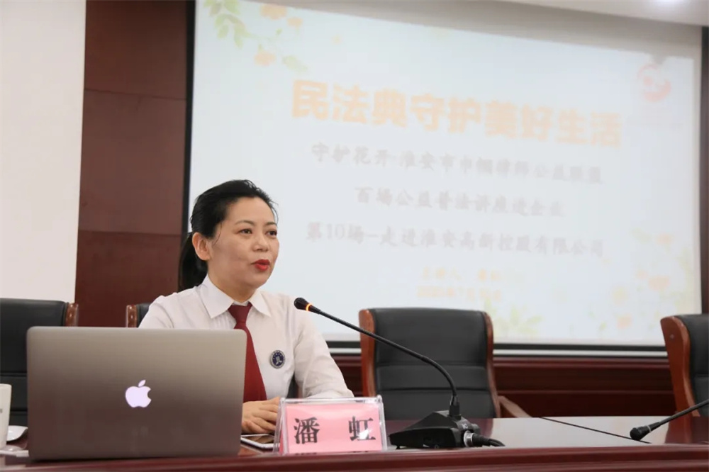 特邀江蘇引航律師事務(wù)所主任、江蘇省律師協(xié)會(huì )常務(wù)理事、淮安市律師協(xié)會(huì )副會(huì )長(cháng)、淮安市人大立法咨詢(xún)顧問(wèn)、市人大代表潘虹女士在公司開(kāi)展“民法典守護美好生活”主題法制講座。潘虹主任從“民法典的前世今生”、“民法典的體系架構”和“民法典的熱點(diǎn)解讀”三個(gè)方面對民法典進(jìn)行了介紹,并根據大家感興趣的熱點(diǎn)話(huà)題詳細展開(kāi),比如“離婚冷靜期”、“擔保方式認定”、“明確夫妻共同債務(wù)”、“刪除公證遺囑優(yōu)先條款”、“設立房屋居住權”、“完善高空拋物墜物治理”等,并通過(guò)真實(shí)的案例和話(huà)題互動(dòng)充分調動(dòng)了參會(huì )人員學(xué)習興趣,讓全體參加人員更加清晰的認識和學(xué)習了民法典。大家紛紛表示,此次法制講座專(zhuān)業(yè)生動(dòng),通俗易懂,受益匪淺,高新控股公司全體人員、“樞紐聯(lián)盟”各單位代表參加活動(dòng)。